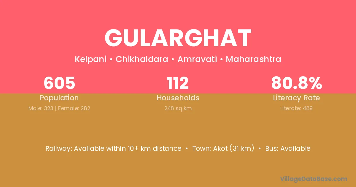 Akot (31 km) is the nearest town to Gularghat village for major economic activities and is located approximately 31 km away.