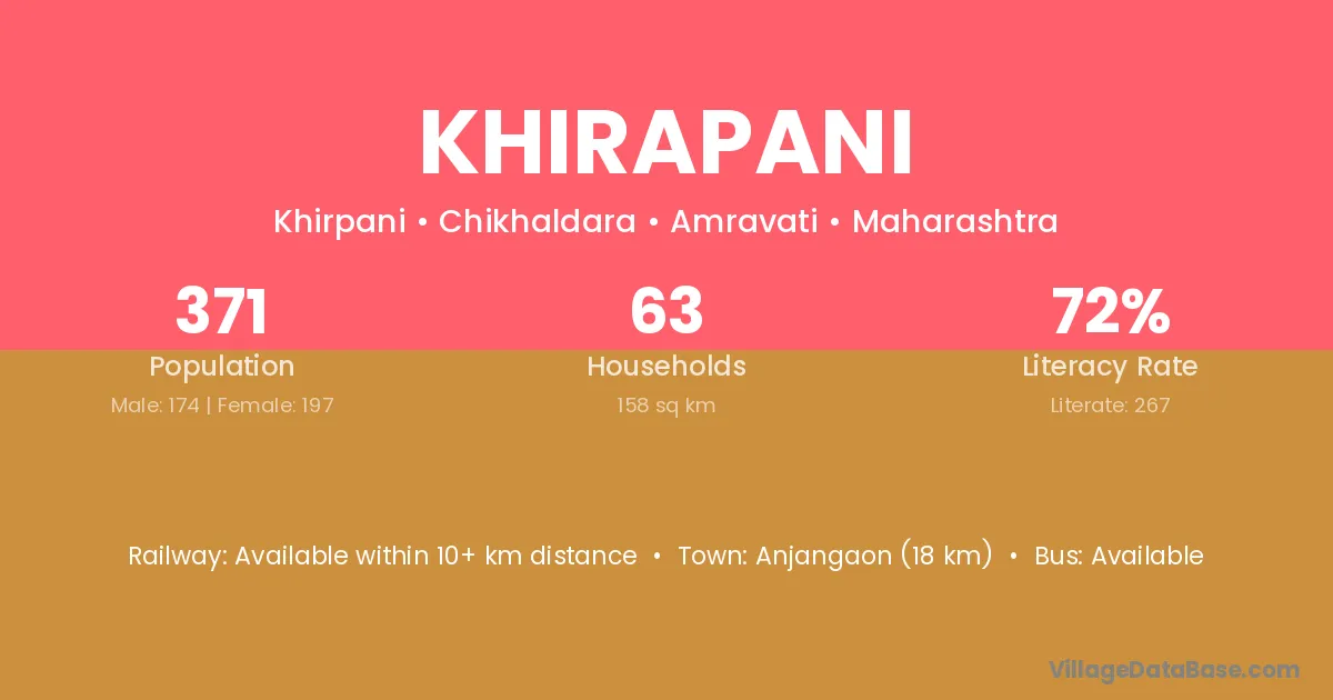 Anjangaon (18 km) is the nearest town to Khirapani village for major economic activities and is located approximately 18 km away.