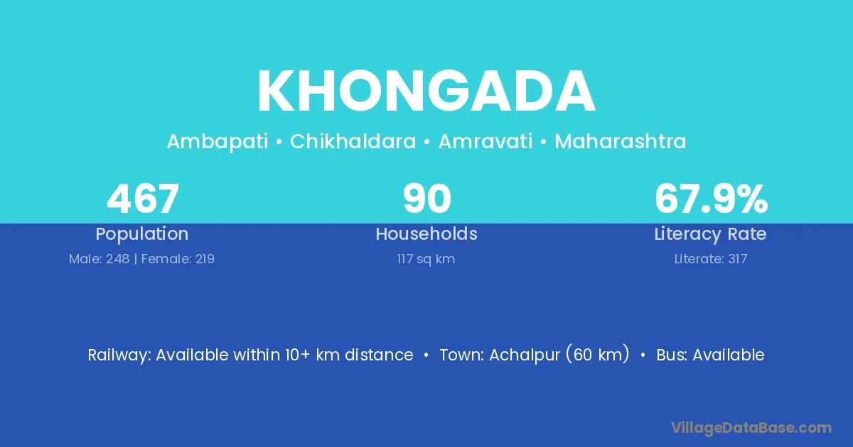 Achalpur (60 km) is the nearest town to Khongada village for major economic activities and is located approximately 60 km away.