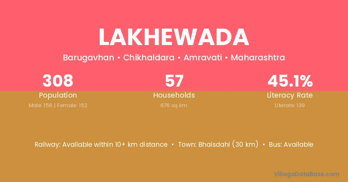 Lakhewada village has a total population of 308 people, of which 156 are males and 152 are females.