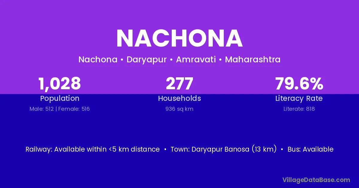 Nachona village has a total population of 1,028 people, of which 512 are males and 516 are females.