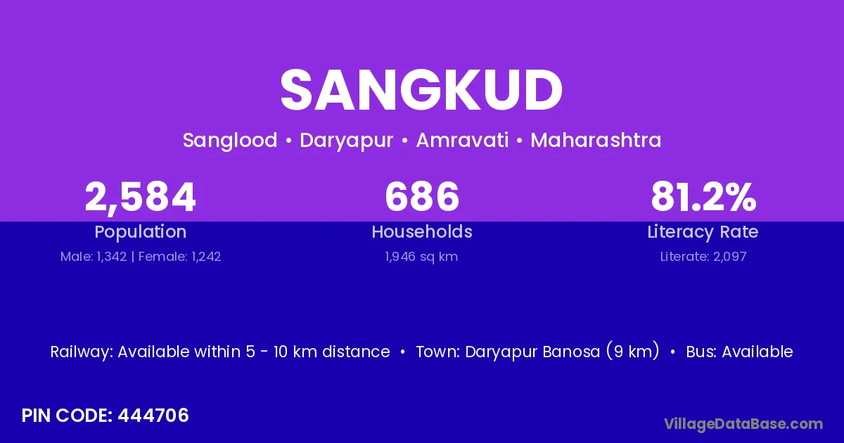 Daryapur Banosa (9 km) is the nearest town to Sangkud village for major economic activities and is located approximately 9 km away.