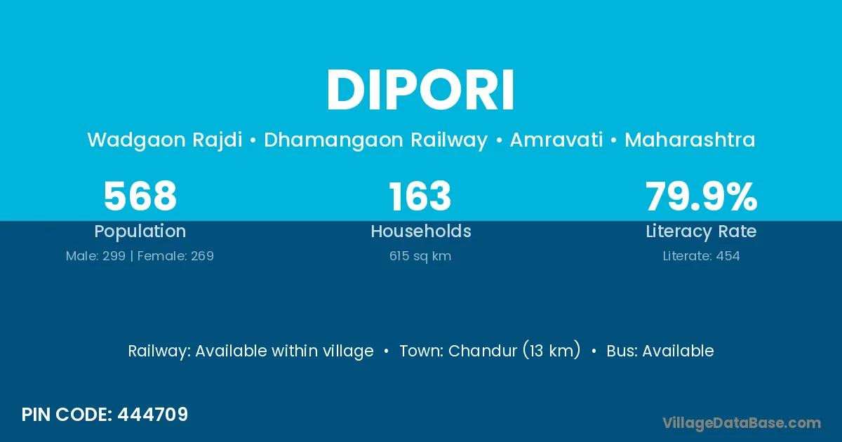 Chandur (13 km) is the nearest town to Dipori village for major economic activities and is located approximately 13 km away.