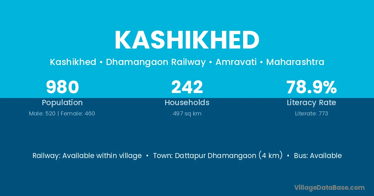 Dattapur Dhamangaon (4 km) is the nearest town to Kashikhed village for major economic activities and is located approximately 4 km away.