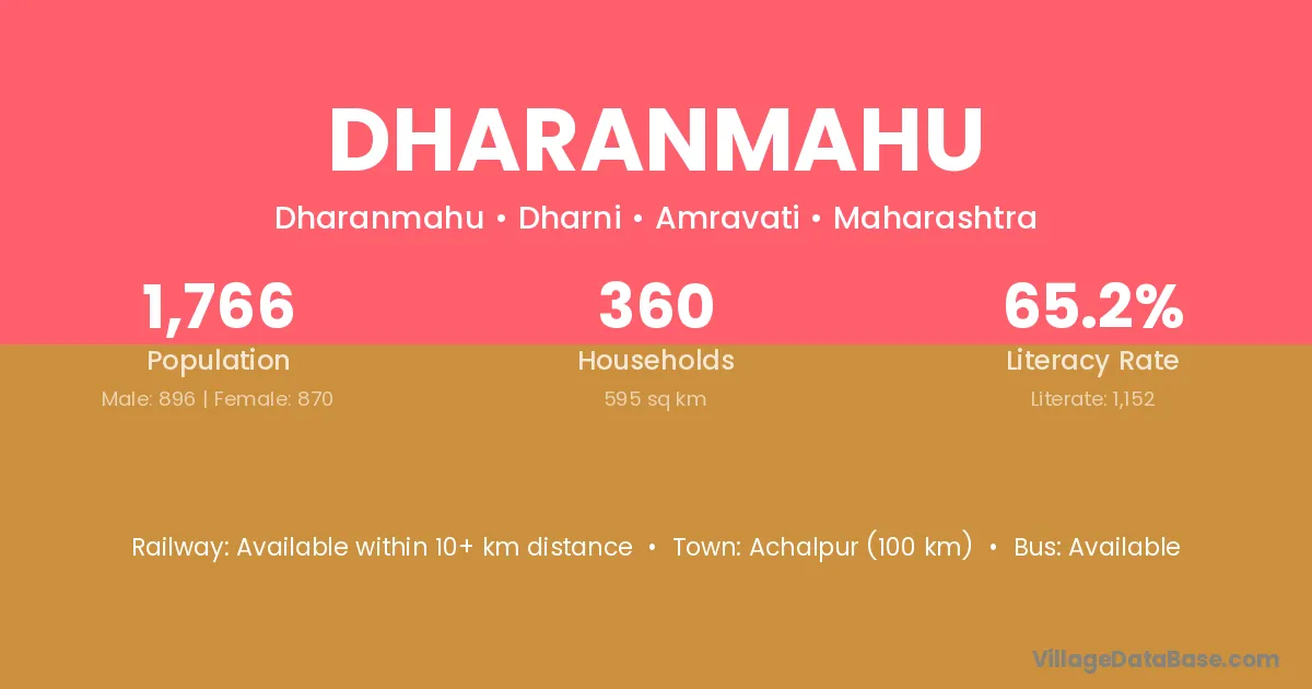 Achalpur (100 km) is the nearest town to Dharanmahu village for major economic activities and is located approximately 100 km away.