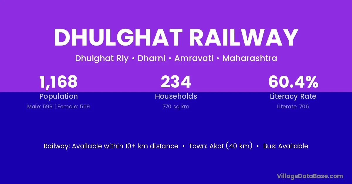 Akot (40 km) is the nearest town to Dhulghat Railway village for major economic activities and is located approximately 40 km away.