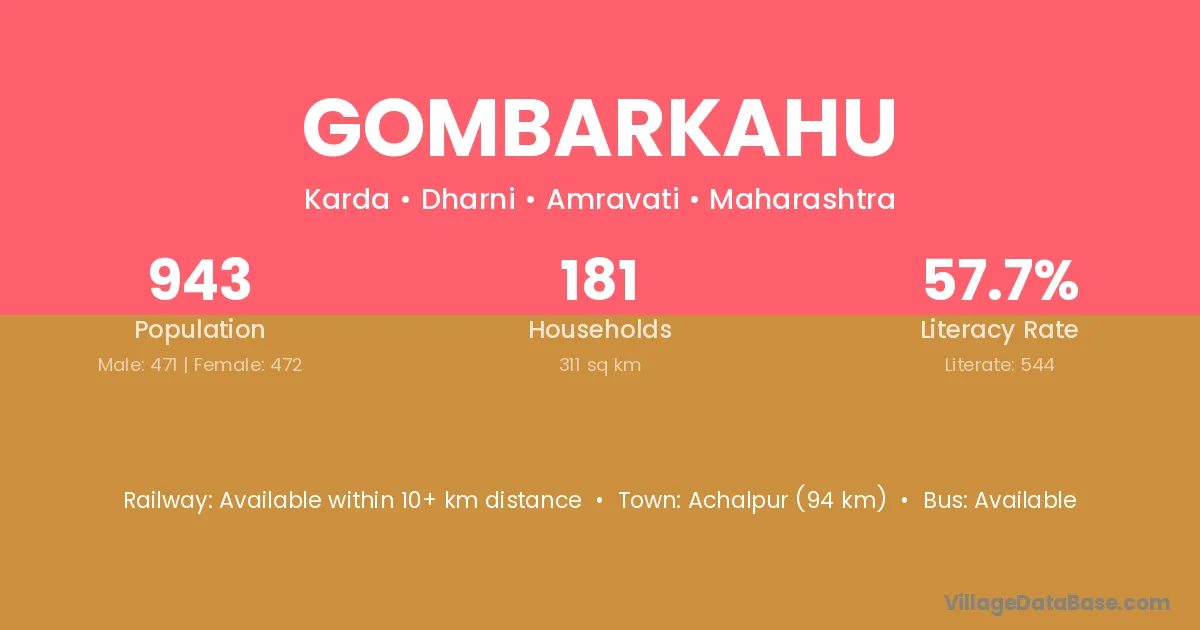 Achalpur (94 km) is the nearest town to Gombarkahu village for major economic activities and is located approximately 94 km away.