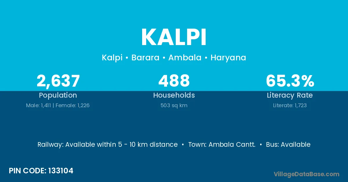 The literacy rate of Kalpi village is 70.39%. Male literacy stands at 76.97% and female literacy at 64.02%.