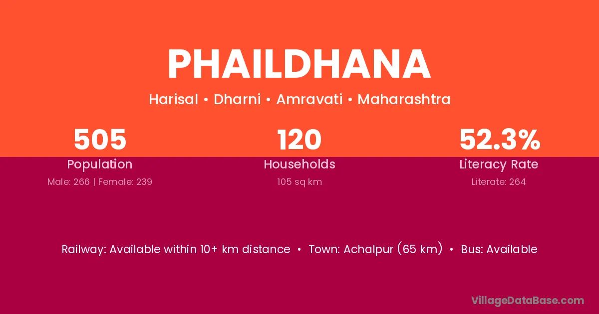 Achalpur (65 km) is the nearest town to Phaildhana village for major economic activities and is located approximately 65 km away.
