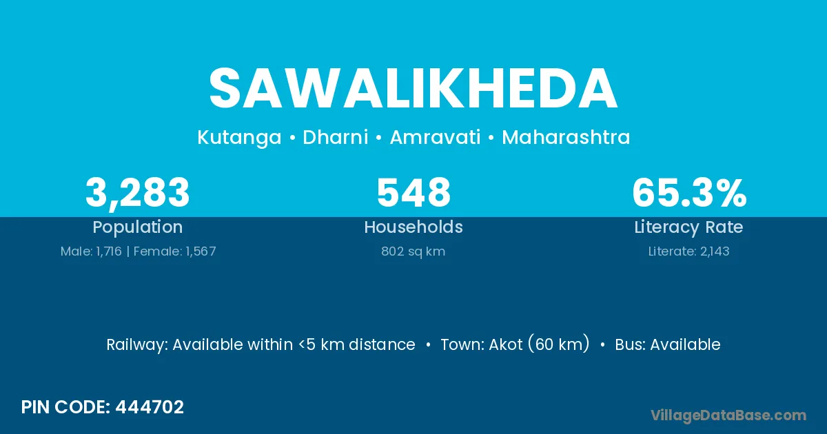 Akot (60 km) is the nearest town to Sawalikheda village for major economic activities and is located approximately 60 km away.