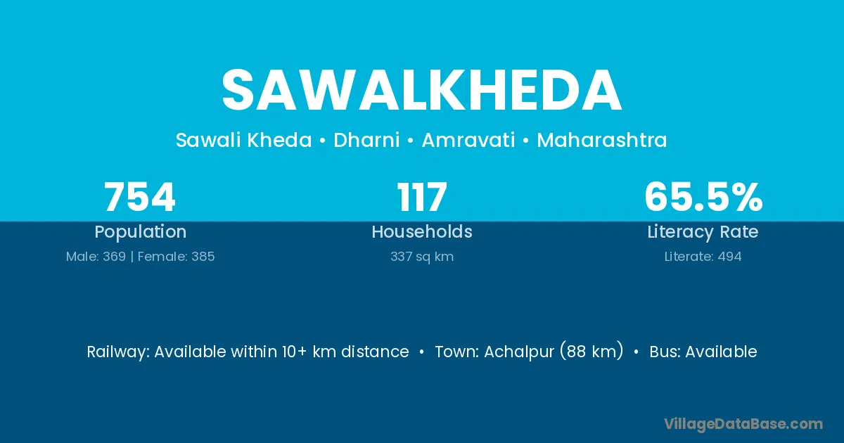 Sawalkheda village has a total population of 754 people, of which 369 are males and 385 are females.