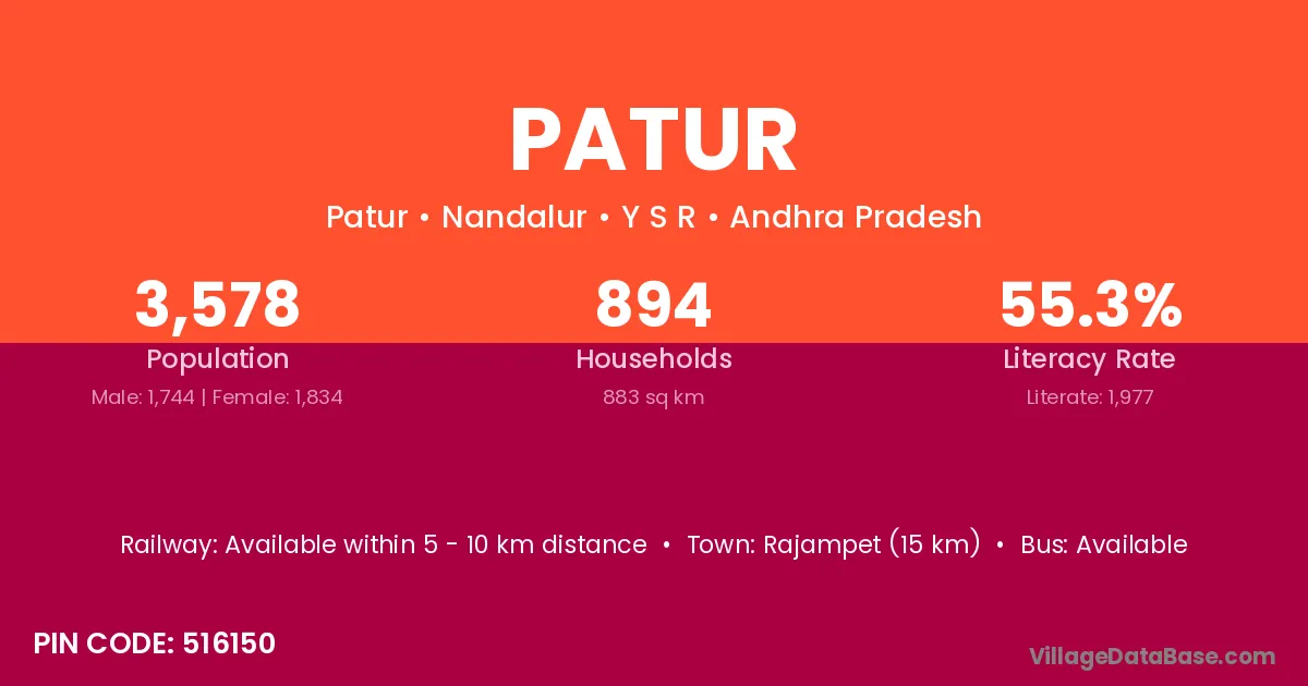 Chandurbazar (17 km) is the nearest town to Patur village for major economic activities and is located approximately 17 km away.
