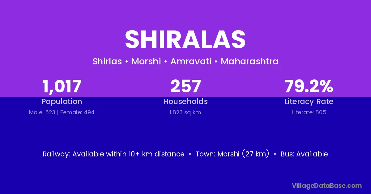 Morshi (27 km) is the nearest town to Shiralas village for major economic activities and is located approximately 27 km away.