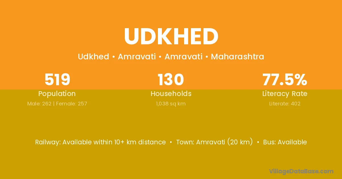 Morshi (15 km) is the nearest town to Udkhed village for major economic activities and is located approximately 15 km away.