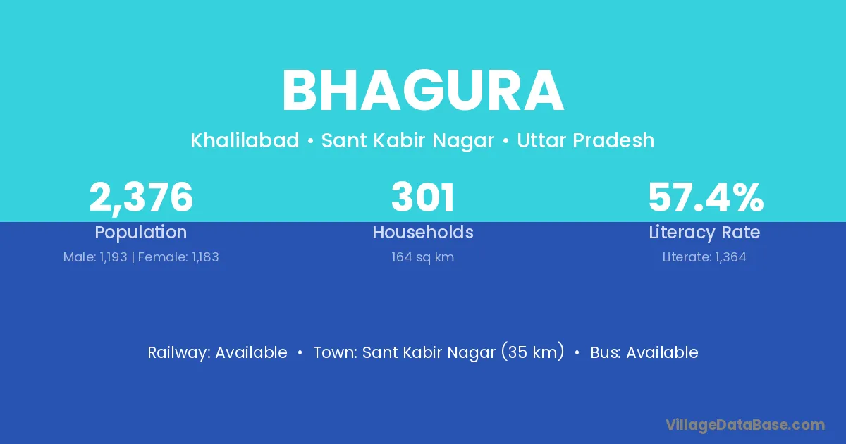The literacy rate of Bhagura village is 73.97%. Male literacy stands at 81.30% and female literacy at 65.58%.