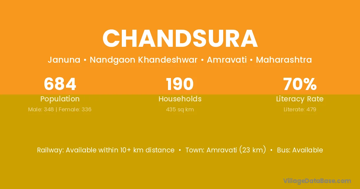 Amravati (23 km) is the nearest town to Chandsura village for major economic activities and is located approximately 23 km away.