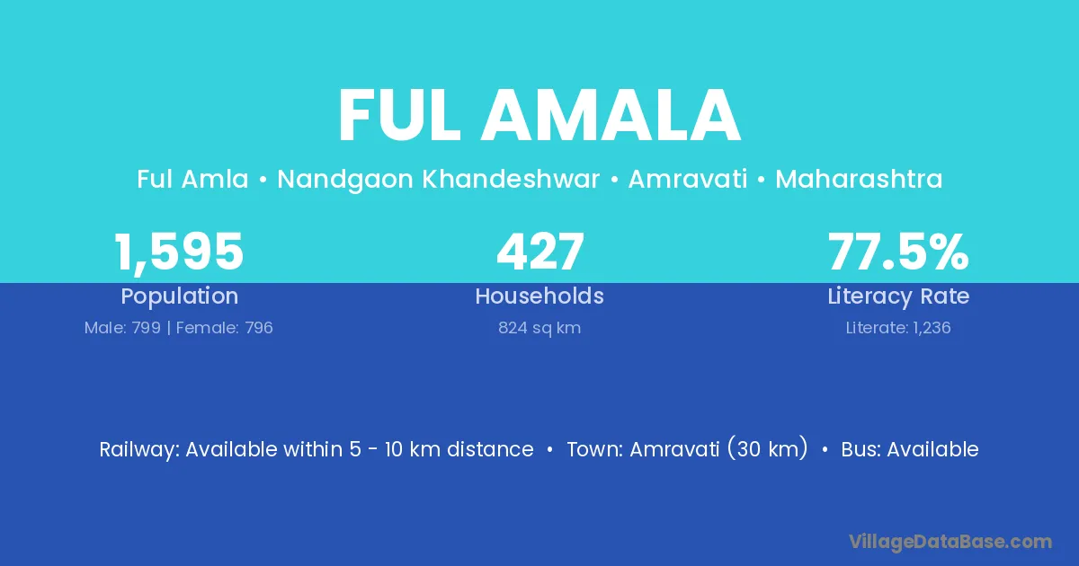 Amravati (30 km) is the nearest town to Ful Amala village for major economic activities and is located approximately 30 km away.
