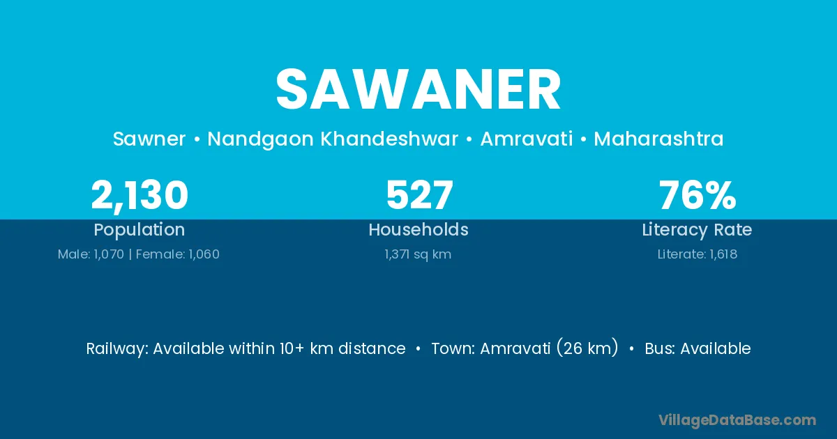 Amravati (26 km) is the nearest town to Sawaner village for major economic activities and is located approximately 26 km away.