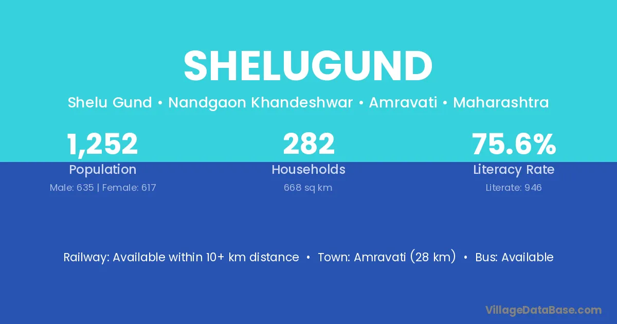 Amravati (28 km) is the nearest town to Shelugund village for major economic activities and is located approximately 28 km away.