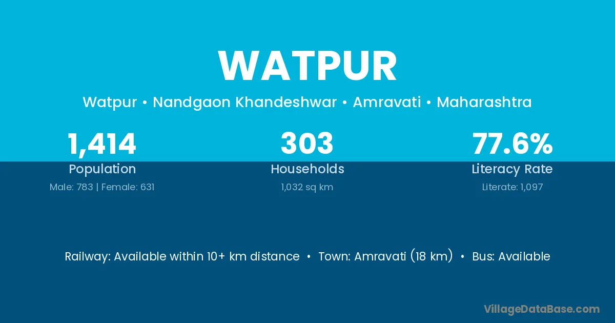 Amravati (18 km) is the nearest town to Watpur village for major economic activities and is located approximately 18 km away.