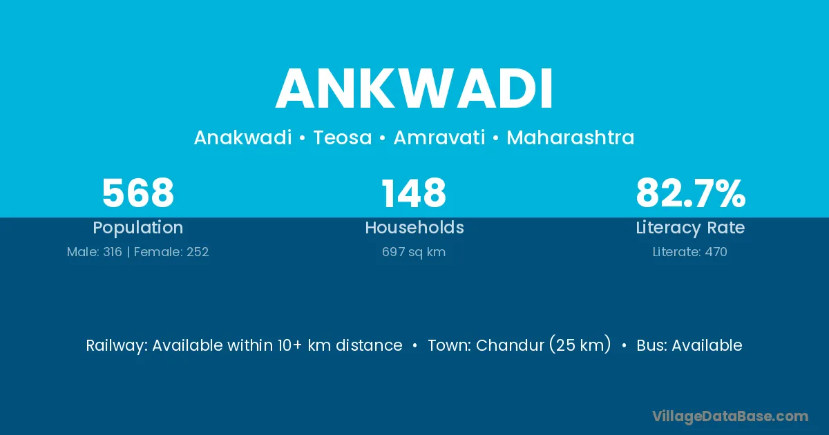 Chandur (25 km) is the nearest town to Ankwadi village for major economic activities and is located approximately 25 km away.