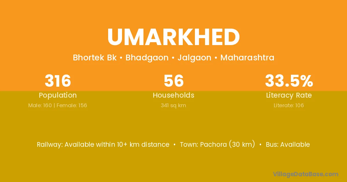 Amravati (55 km) is the nearest town to Umarkhed village for major economic activities and is located approximately 55 km away.