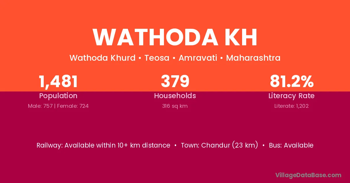 Wathoda Kh village has a total population of 1,481 people, of which 757 are males and 724 are females.