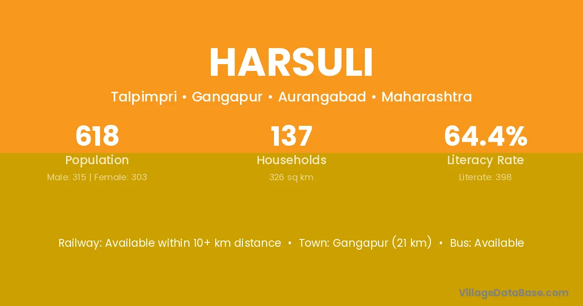Gangapur (21 km) is the nearest town to Harsuli village for major economic activities and is located approximately 21 km away.