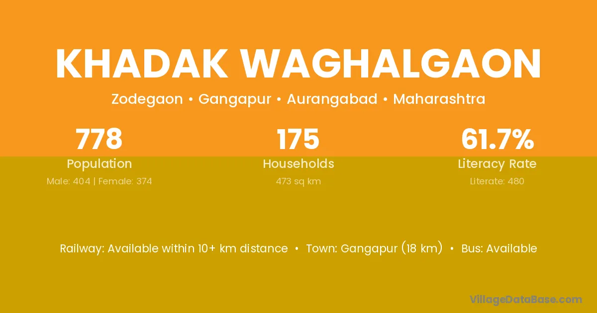 Khadak Waghalgaon village has a total population of 778 people, of which 404 are males and 374 are females.
