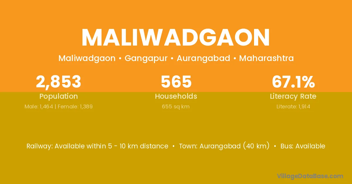 Aurangabad (40 km) is the nearest town to Maliwadgaon village for major economic activities and is located approximately 40 km away.