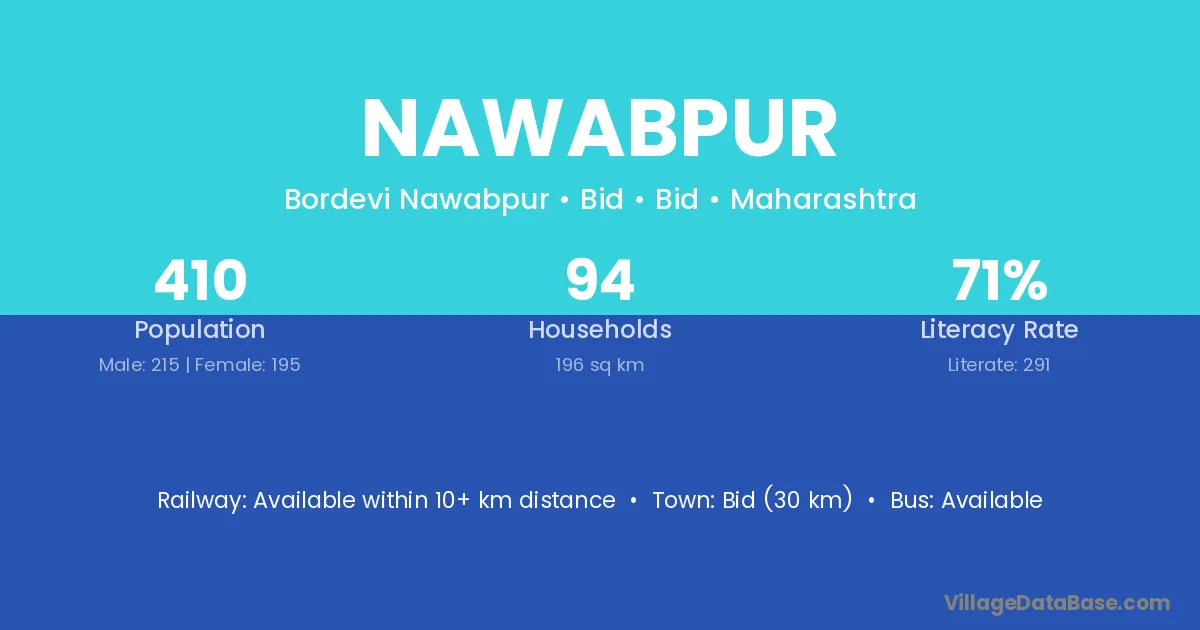 Gangapur (5 km) is the nearest town to Nawabpur village for major economic activities and is located approximately 5 km away.