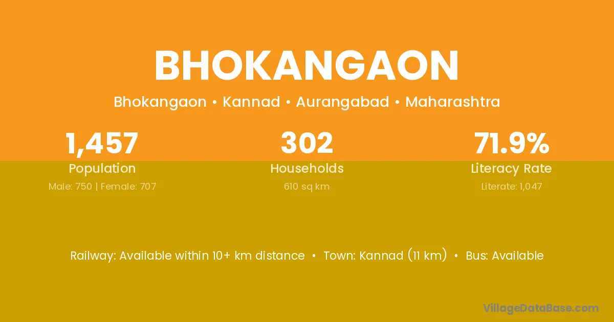 Bhokangaon village has a total population of 1,457 people, of which 750 are males and 707 are females.