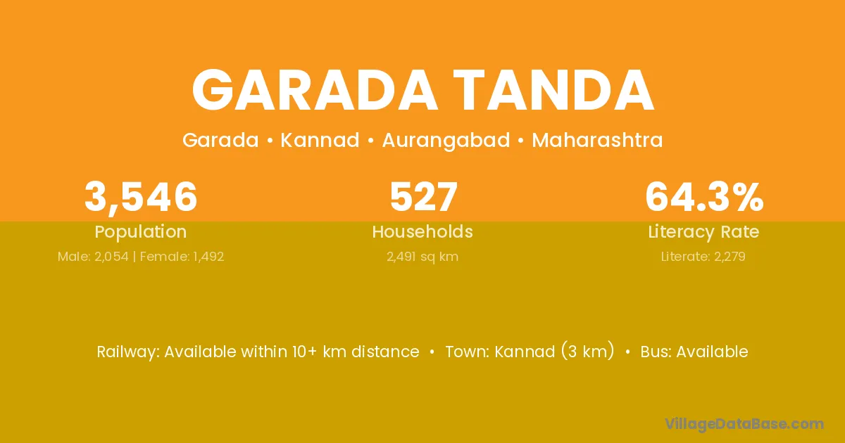 Kannad (3 km) is the nearest town to Garada Tanda village for major economic activities and is located approximately 3 km away.