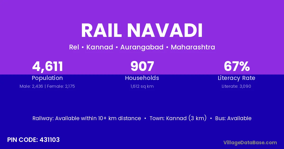 Kannad (3 km) is the nearest town to Rail Navadi village for major economic activities and is located approximately 3 km away.
