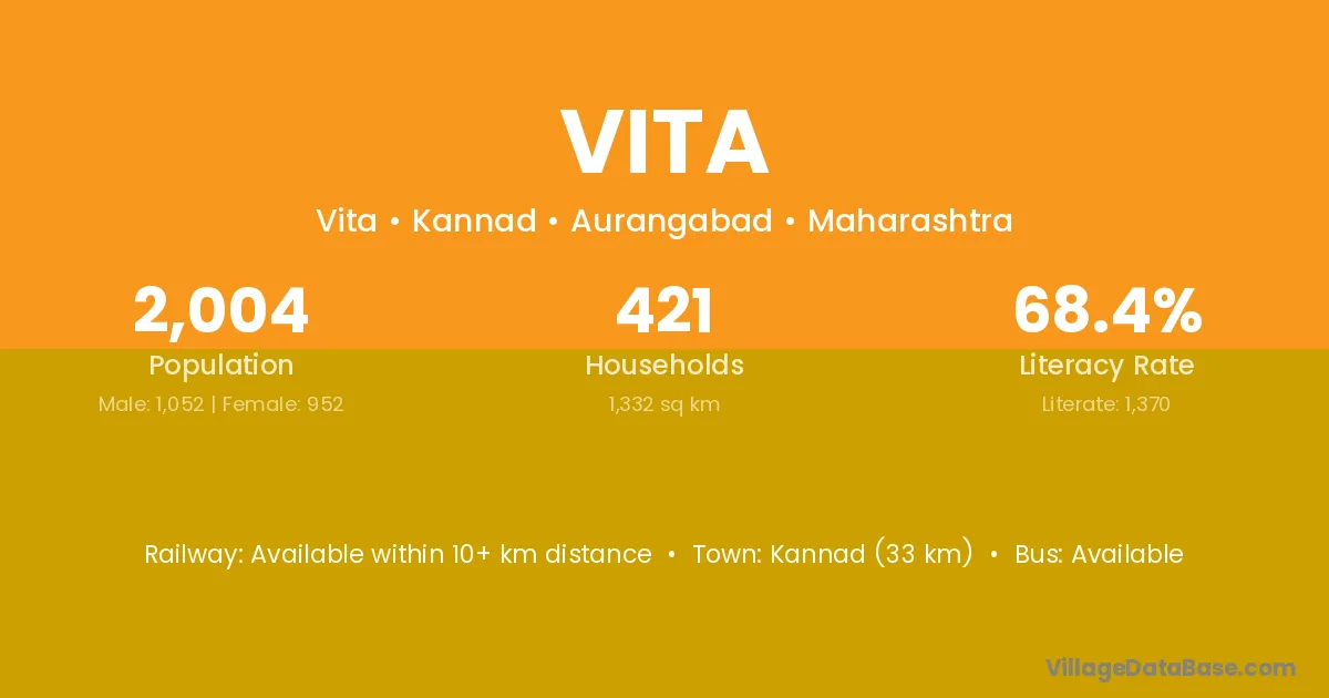 Kannad (33 km) is the nearest town to Vita village for major economic activities and is located approximately 33 km away.