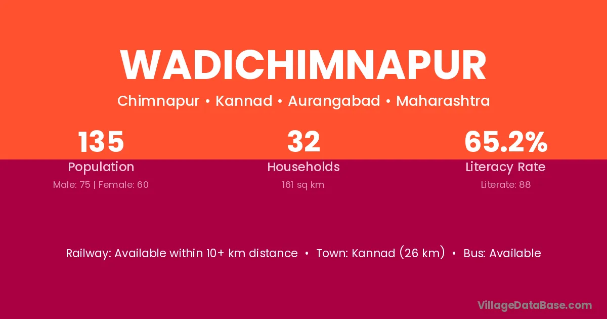 Kannad (26 km) is the nearest town to Wadichimnapur village for major economic activities and is located approximately 26 km away.