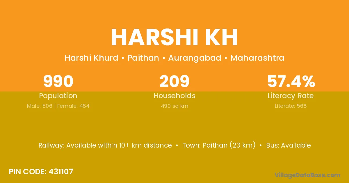 Paithan (23 km) is the nearest town to Harshi Kh village for major economic activities and is located approximately 23 km away.