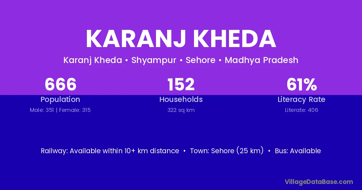 Karanj Kheda village has a total population of 709 people, of which 369 are males and 340 are females.