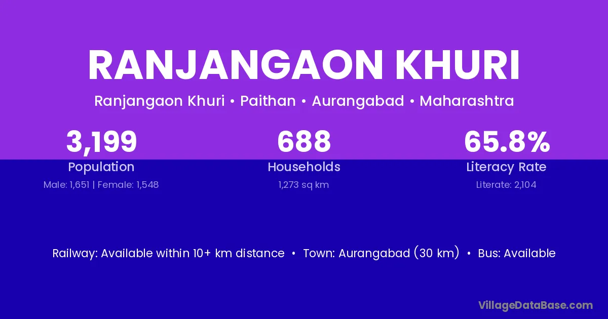 Aurangabad (30 km) is the nearest town to Ranjangaon Khuri village for major economic activities and is located approximately 30 km away.