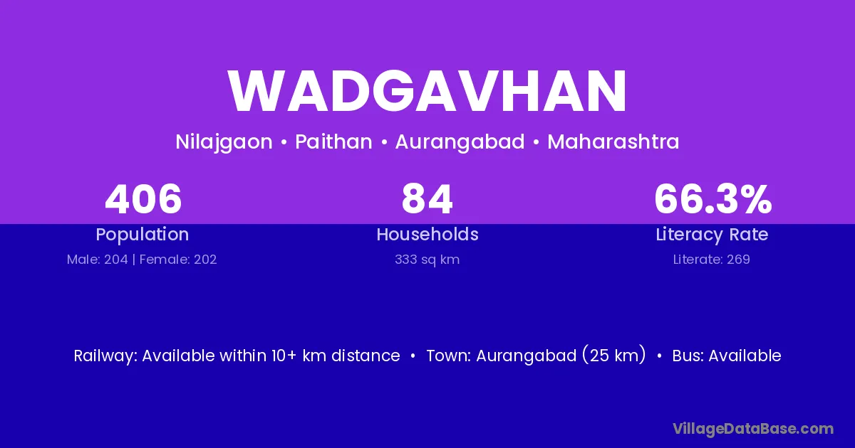 Wadgavhan village has a total population of 406 people, of which 204 are males and 202 are females.