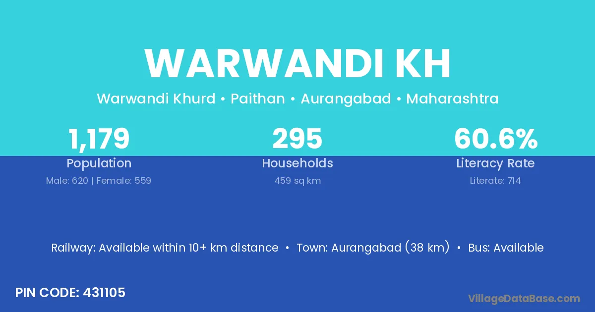 Aurangabad (38 km) is the nearest town to Warwandi Kh village for major economic activities and is located approximately 38 km away.