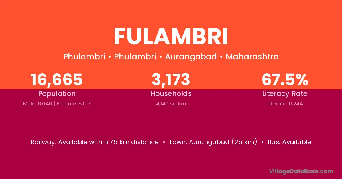 Aurangabad (25 km) is the nearest town to Fulambri village for major economic activities and is located approximately 25 km away.