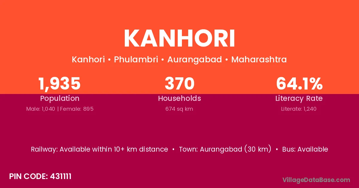 Aurangabad (30 km) is the nearest town to Kanhori village for major economic activities and is located approximately 30 km away.