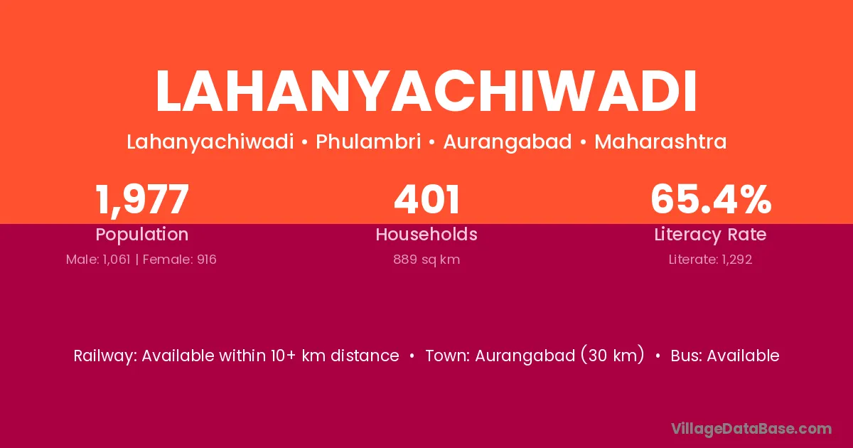 Lahanyachiwadi village has a total population of 1,977 people, of which 1,061 are males and 916 are females.