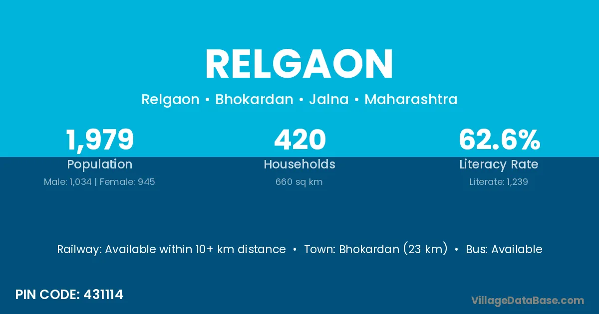 Aurangabad (15 km) is the nearest town to Relgaon village for major economic activities and is located approximately 15 km away.
