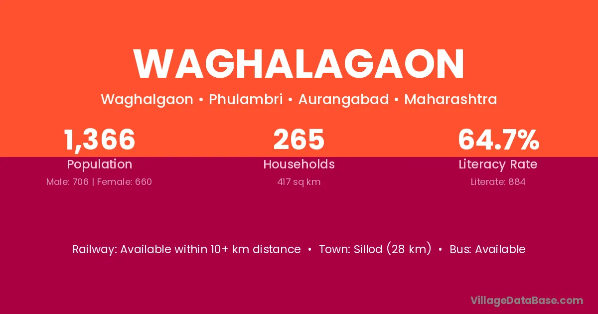 Sillod (28 km) is the nearest town to Waghalagaon village for major economic activities and is located approximately 28 km away.