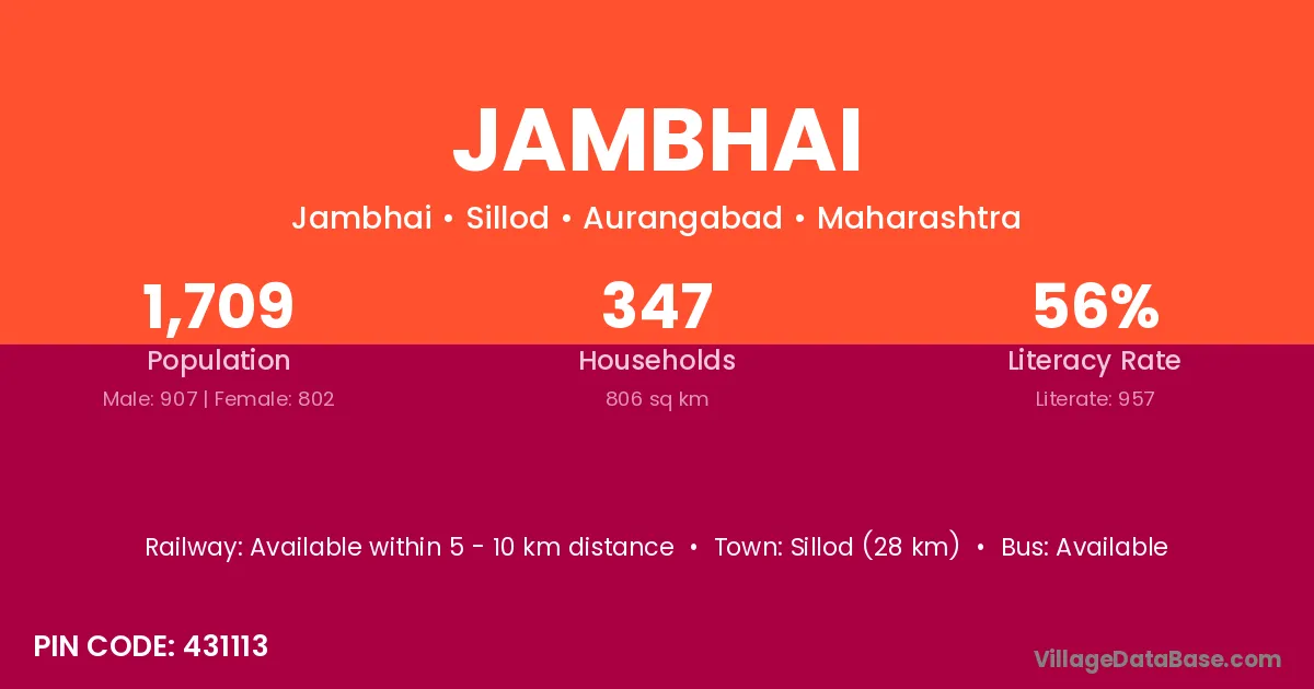 Sillod (28 km) is the nearest town to Jambhai village for major economic activities and is located approximately 28 km away.