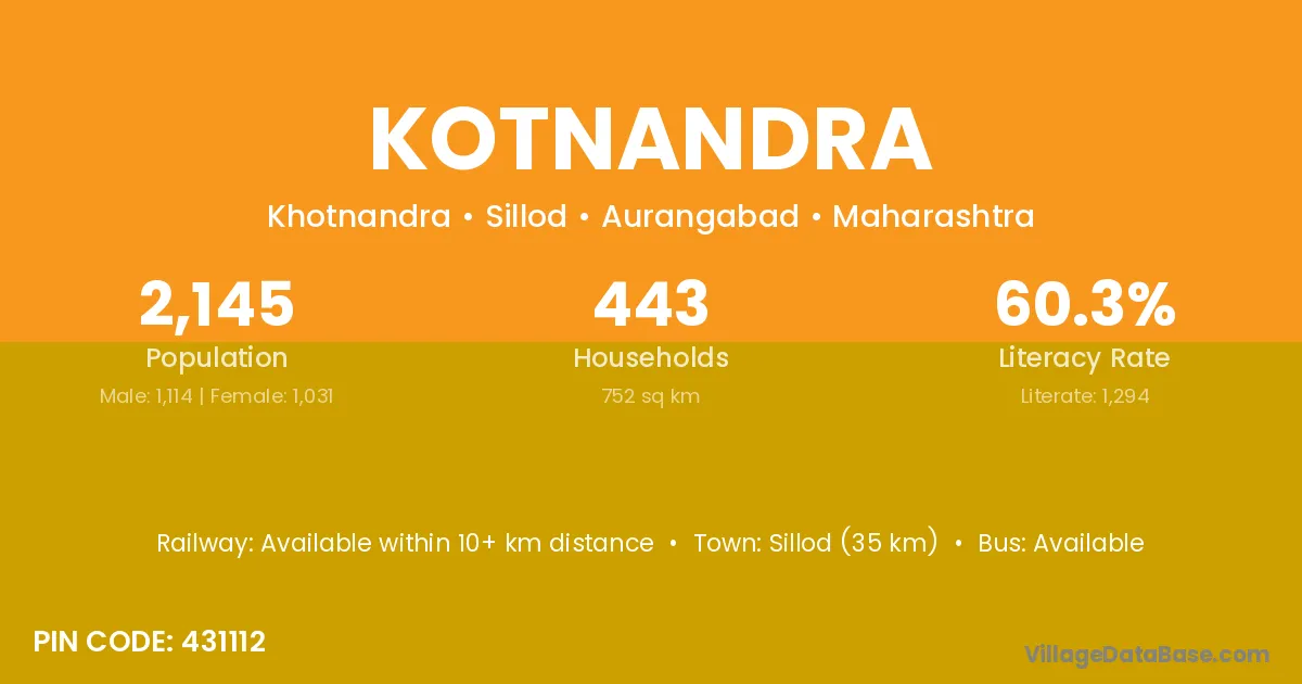 Sillod (35 km) is the nearest town to Kotnandra village for major economic activities and is located approximately 35 km away.