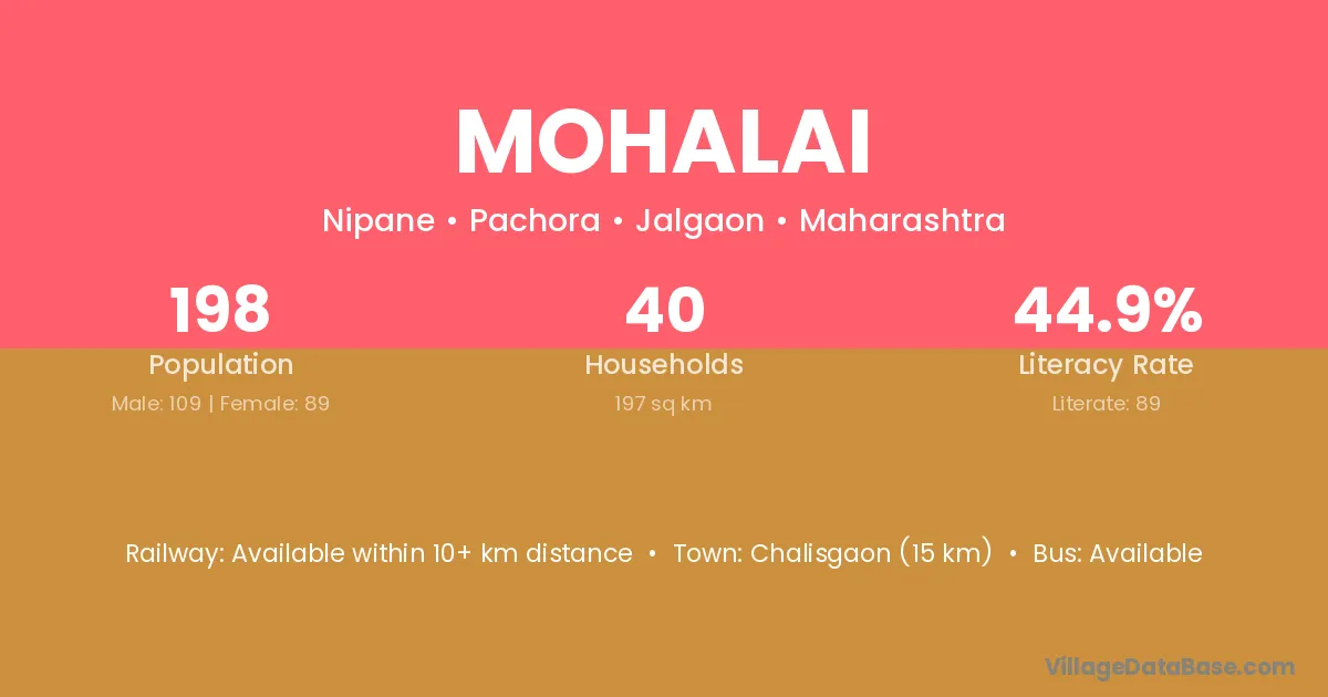 Pachora (160 km) is the nearest town to Mohalai village for major economic activities and is located approximately 160 km away.