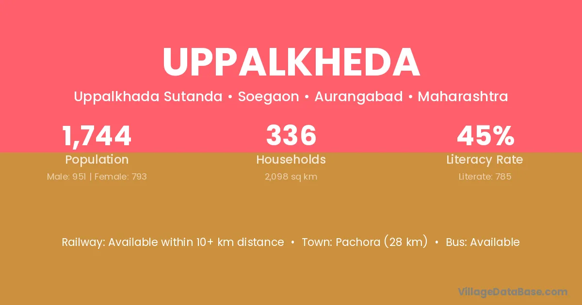 Uppalkheda village is located in the Soegaon Tehsil of the Aurangabad district in Maharashtra .